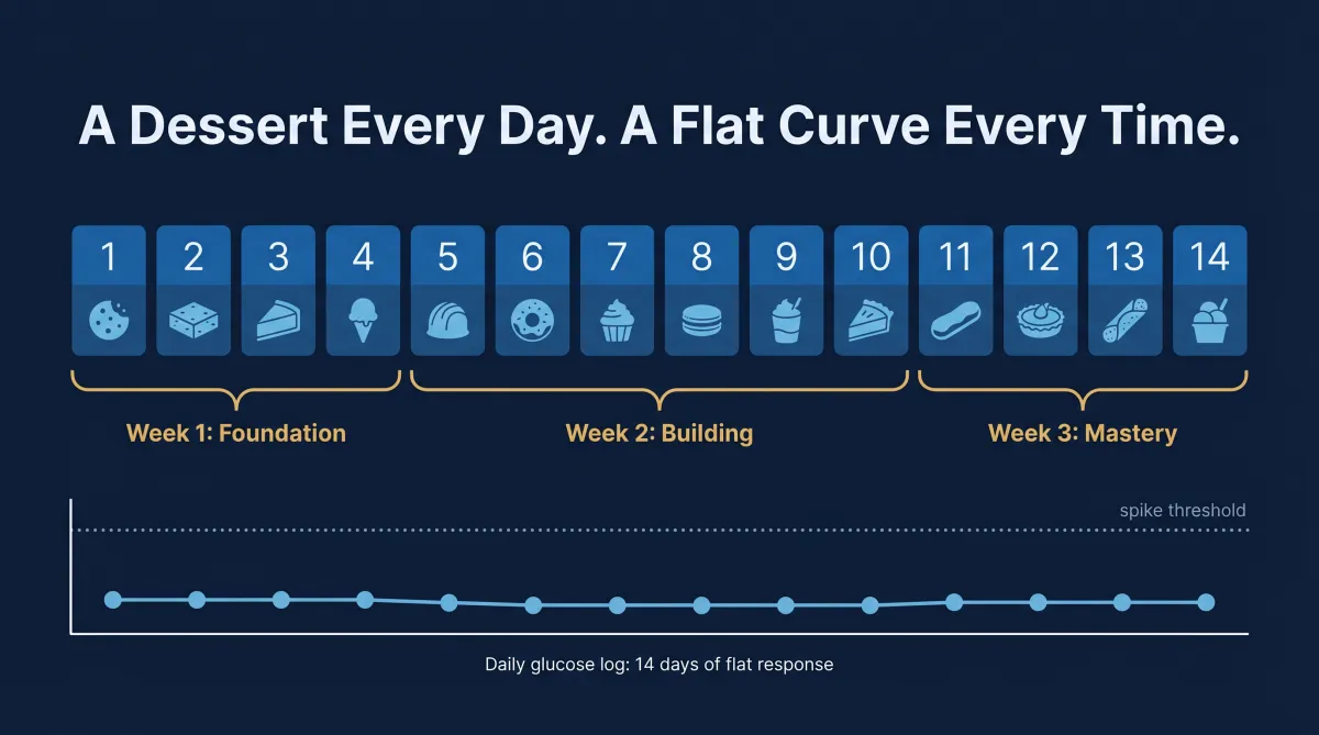 A daily dessert for 14 days — structured, tested, and blood-sugar safe every single time